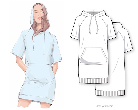 Short Raglan Sleeve Hoodie Dress Pdf Sewing Pattern For Etsy